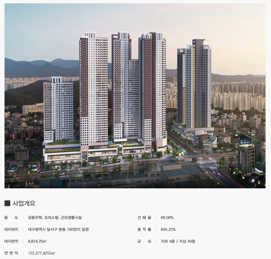 지상 최고 47층의 웅장한 높이로 설계되어 탁 트인 조망권과 함께 대구를 대표하는 주거 상징성을 갖추고 있습니다.